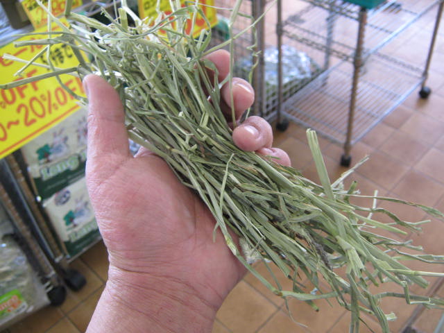 中身はとても青々とした牧草で、葉は長く固めの牧草です↑ちなみにまつど店のウサ仔達もコチラを食べています